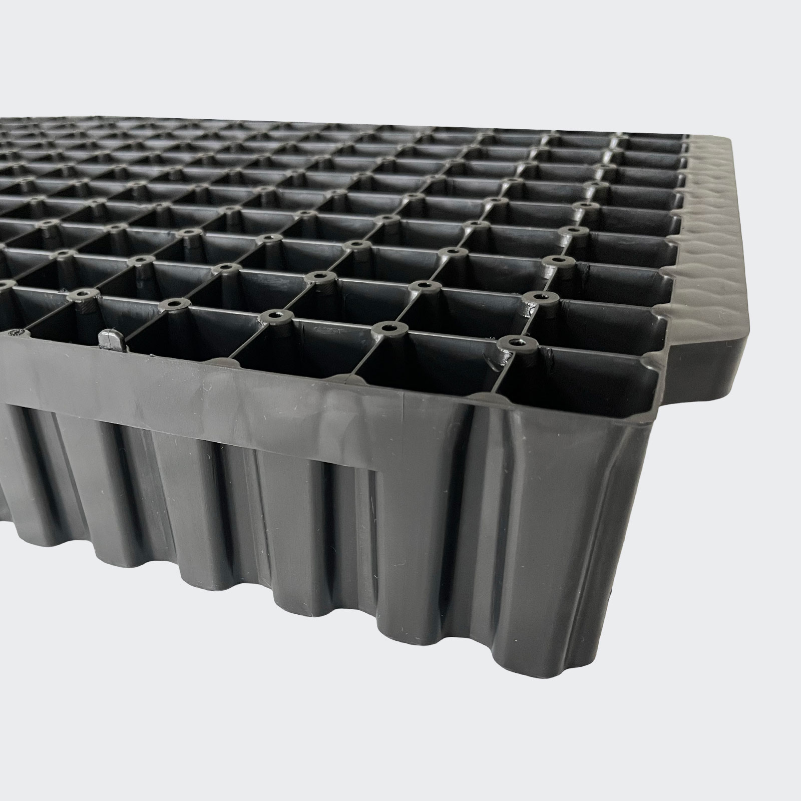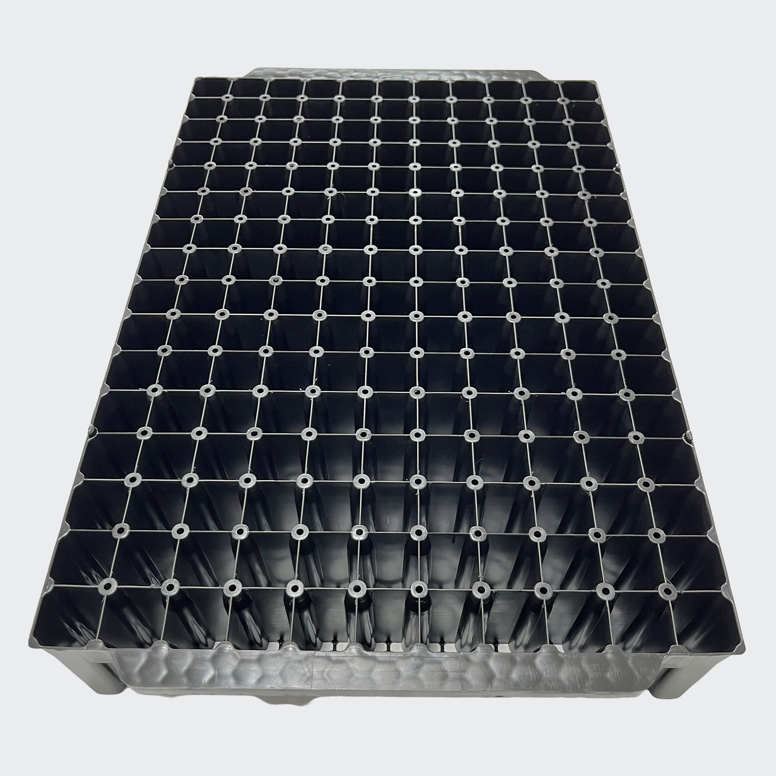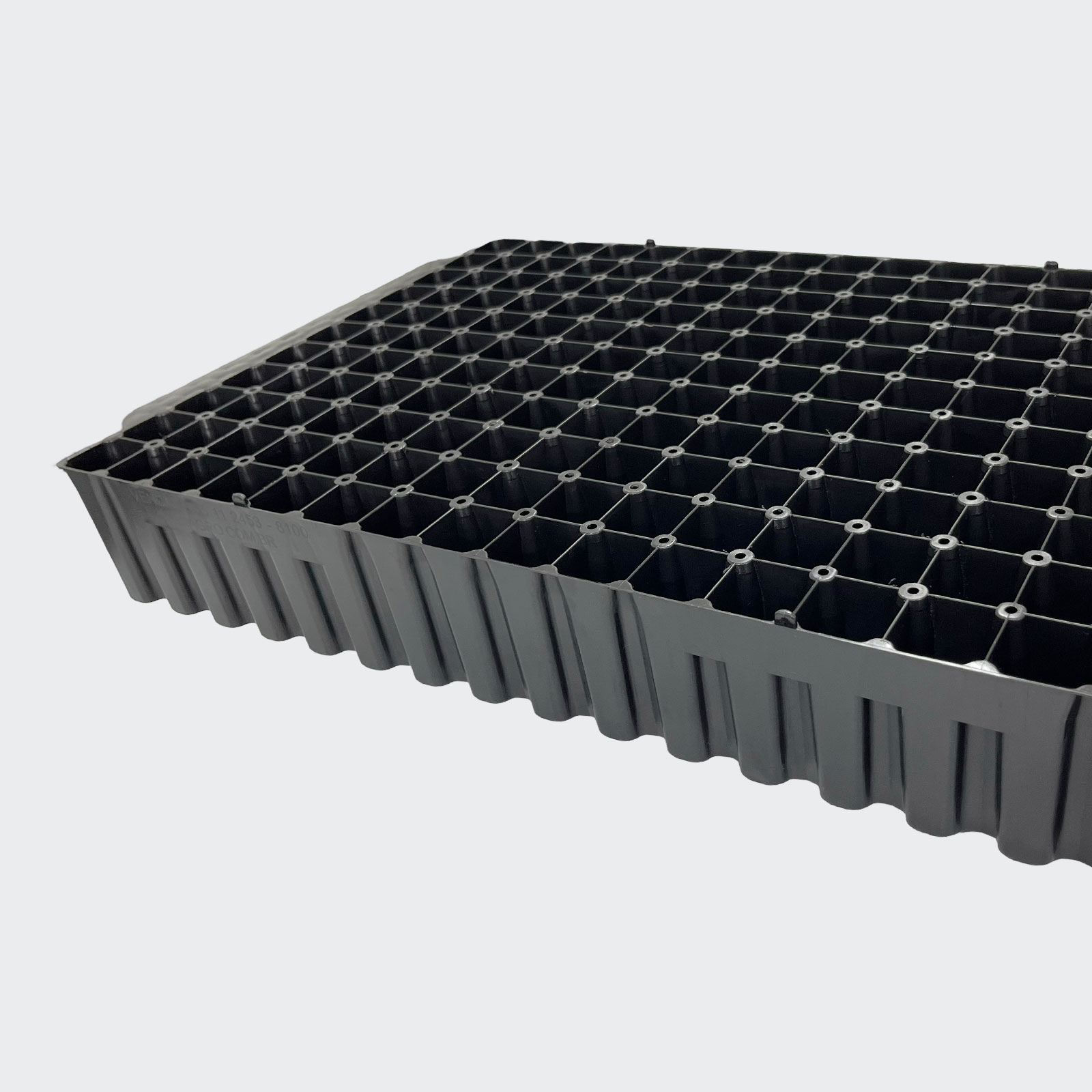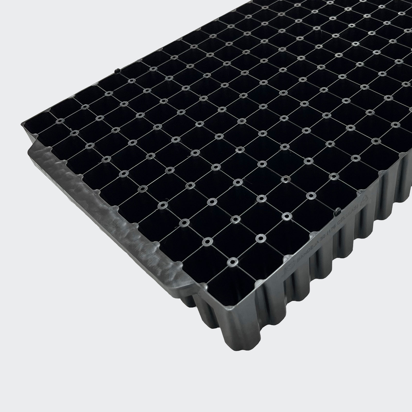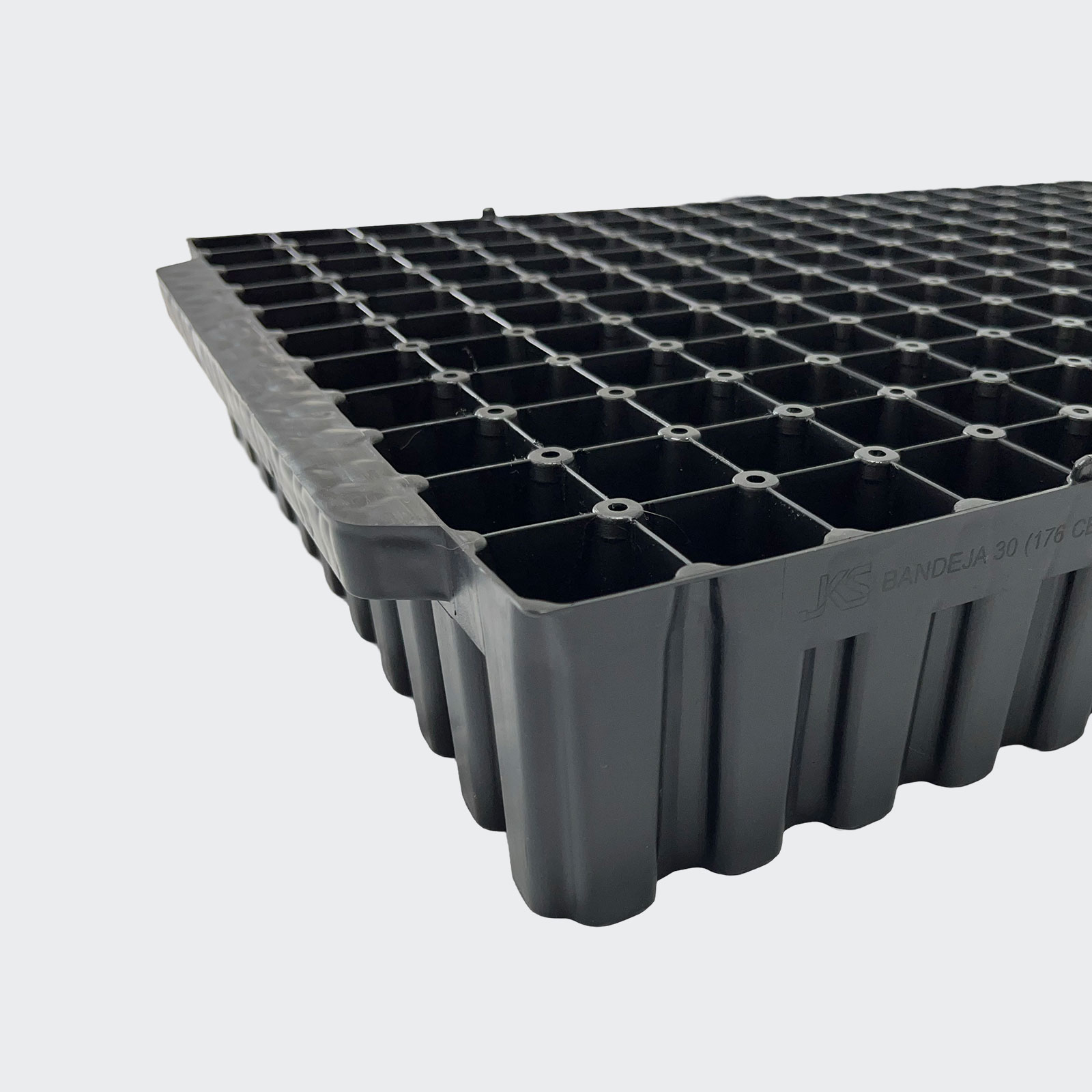 A bandeja plástica rígida de 176 células é projetada para acomodar paperpots com até 30 mm de diâmetro.