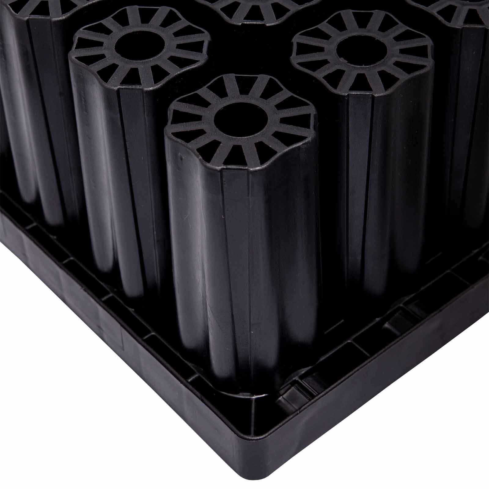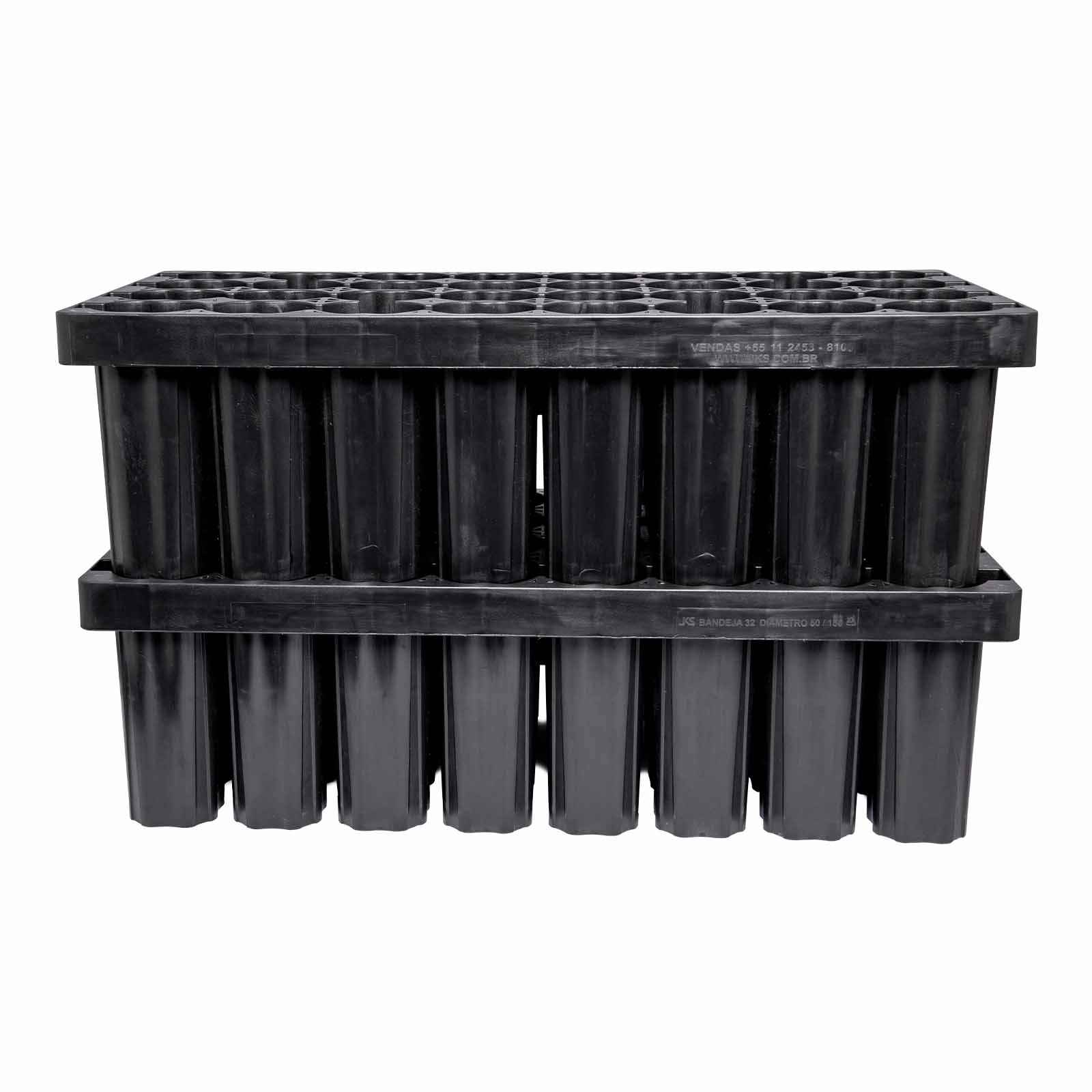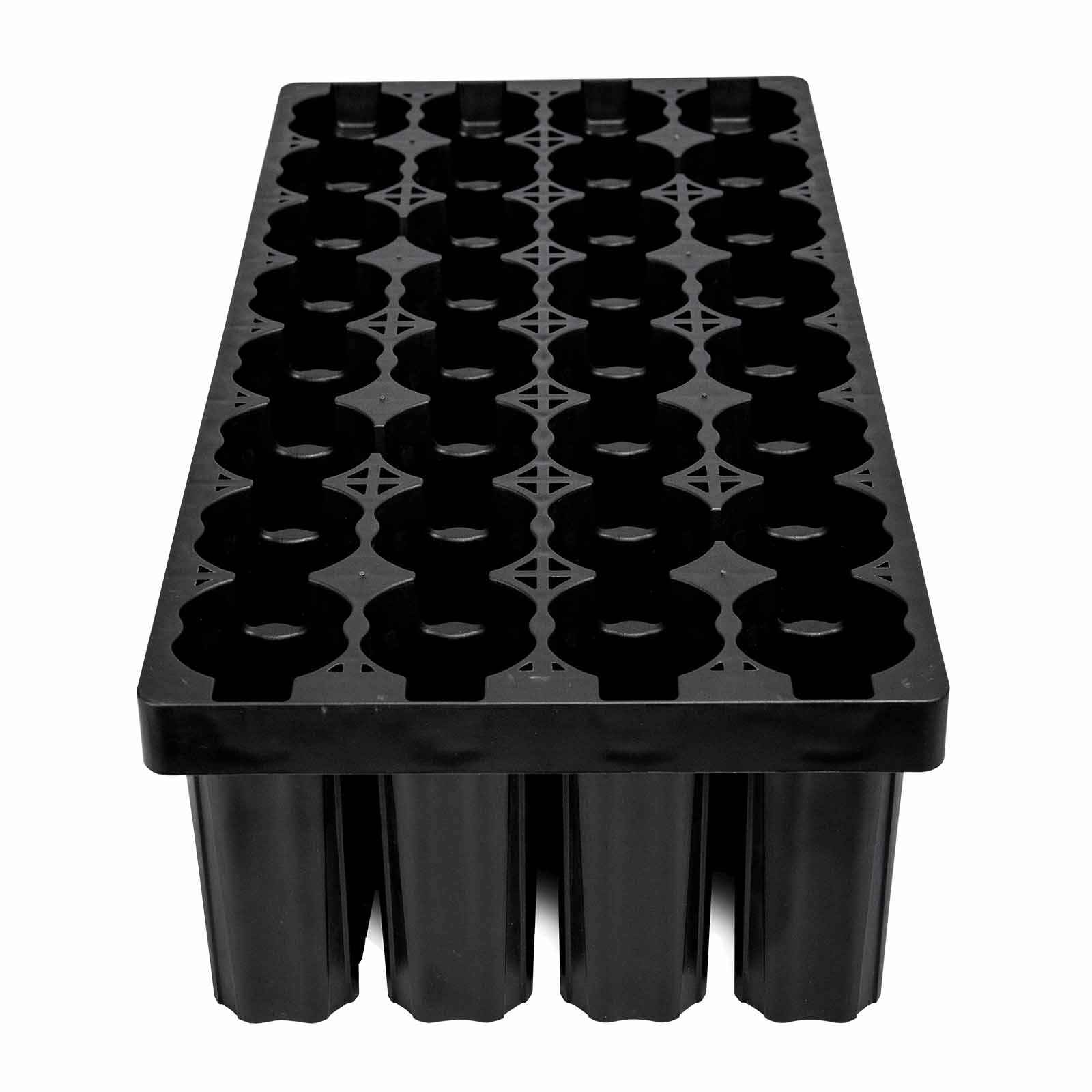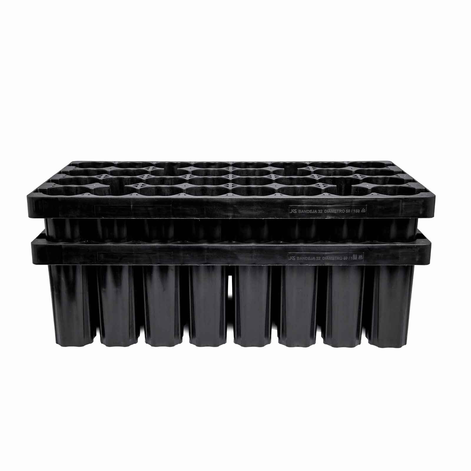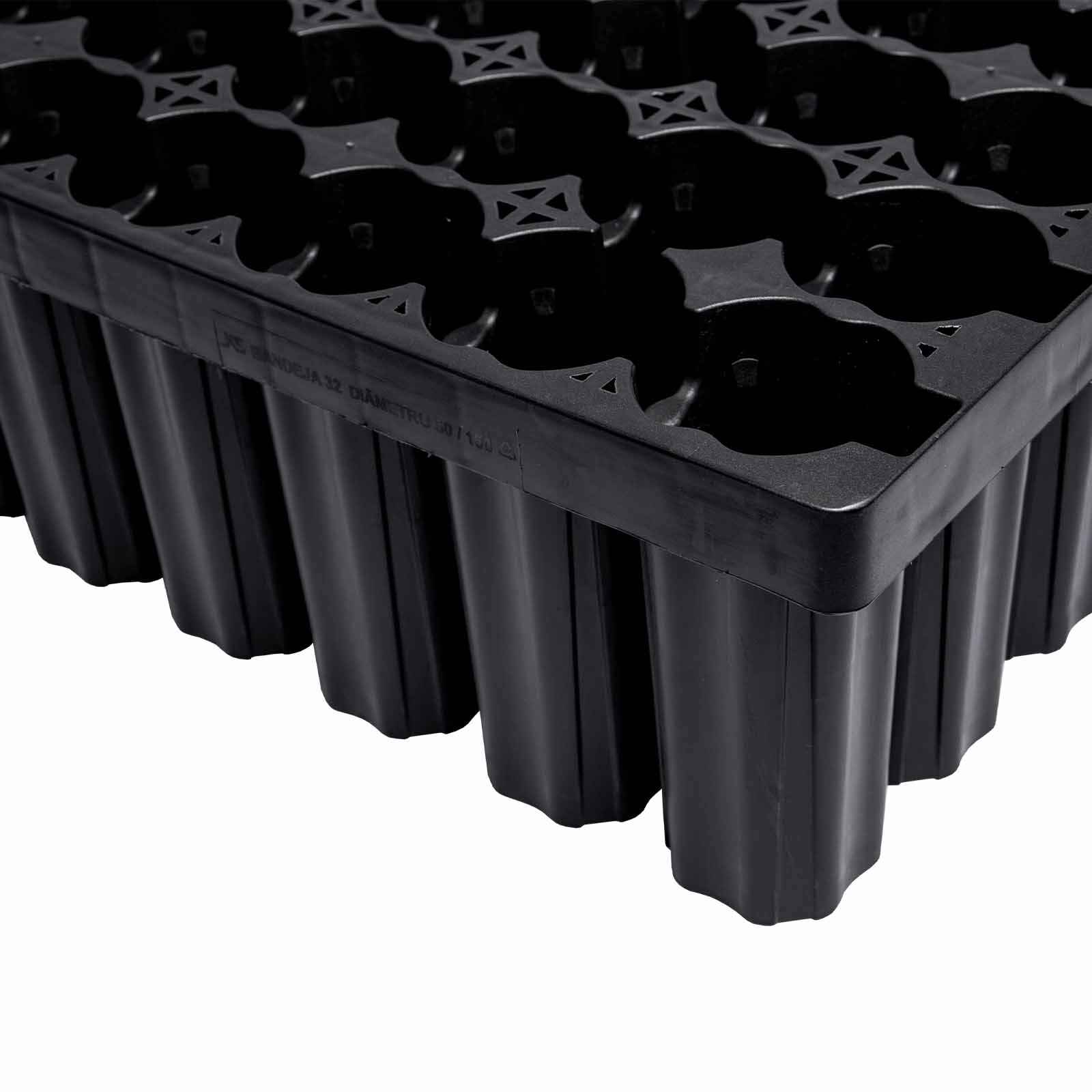A bandeja plástica rígida de 32 células é projetada para acomodar paperpots com ate 50 mm de diâmetro e 150mm de altura.