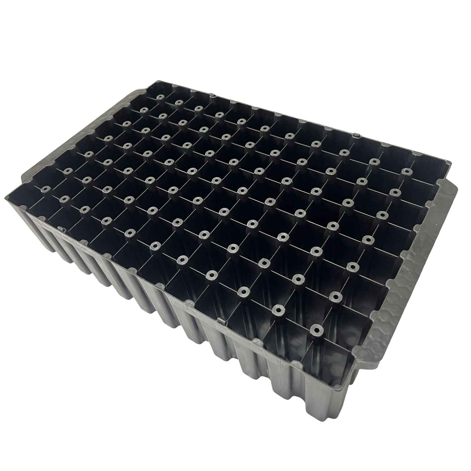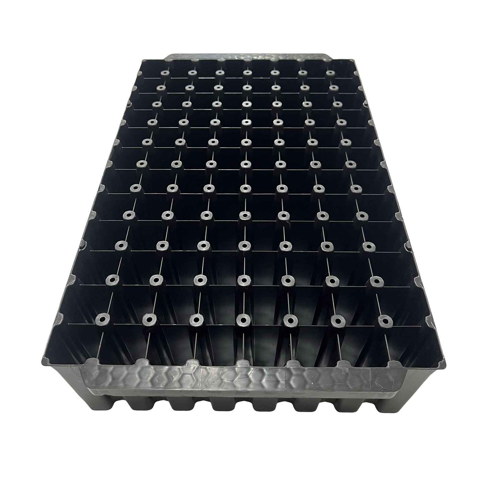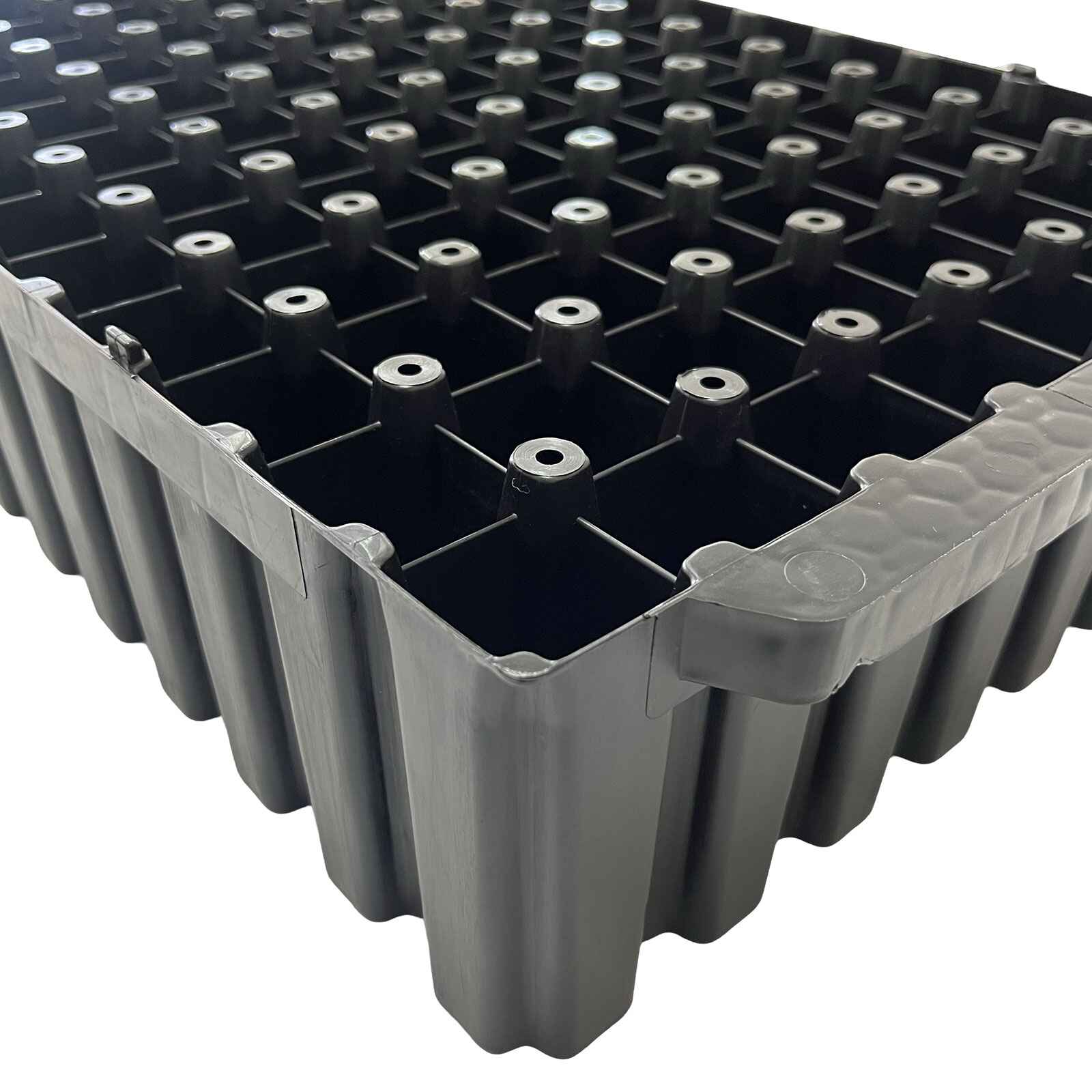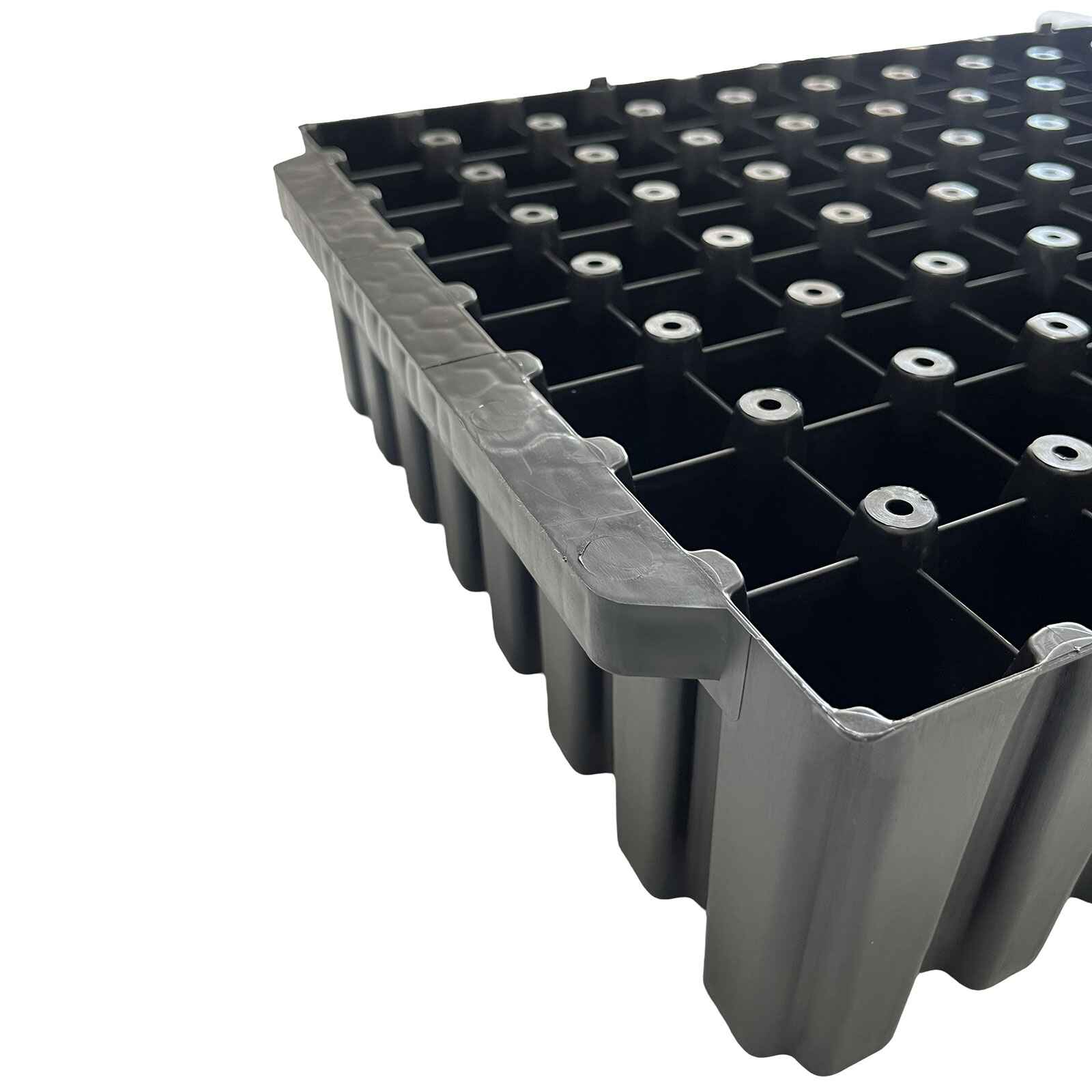 A bandeja plástica rígida 96 células é projetada para acomodar paperpots com até 40 mm de diâmetro e altura de 120 mm.